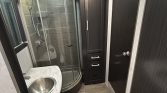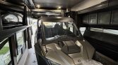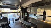 2 electric hoist queen beds, bottom bunk turns into a dining room.