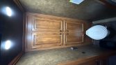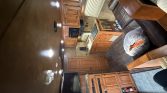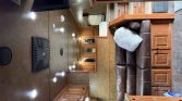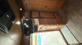 Bathroom / shower / kitchen sink / stove / microwave / fridge / AC & Heat / queen mattress up top and couch that folds into bed