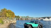 on fresh water. Car does 85mph on land and as a boat does 45mph on